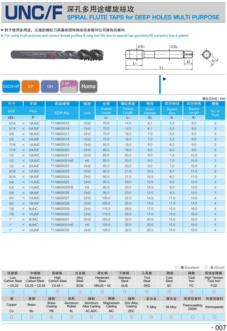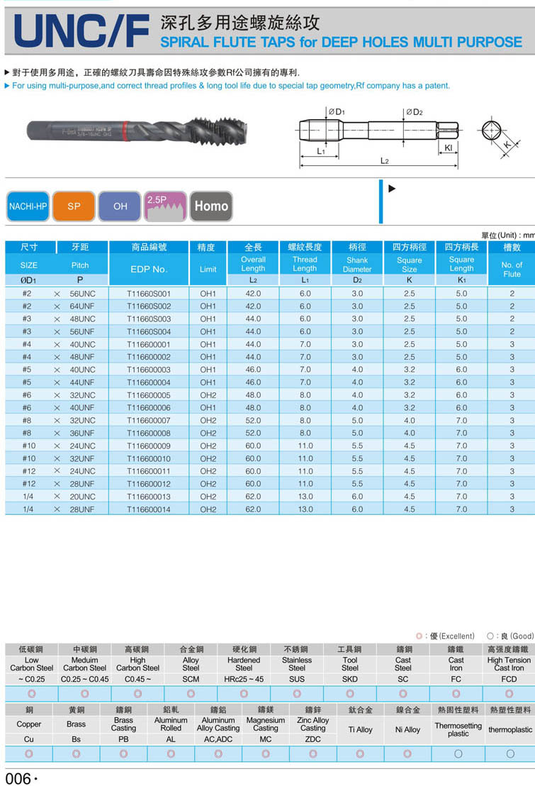 2. 美制螺旋鋼件絲攻006