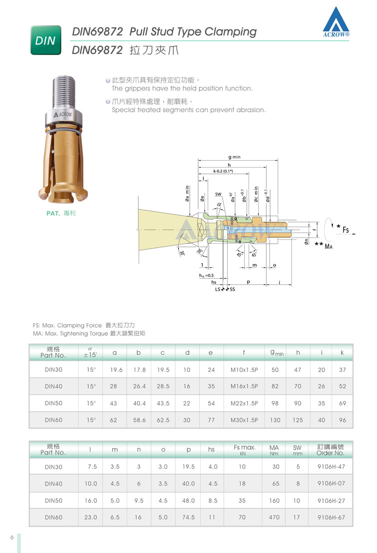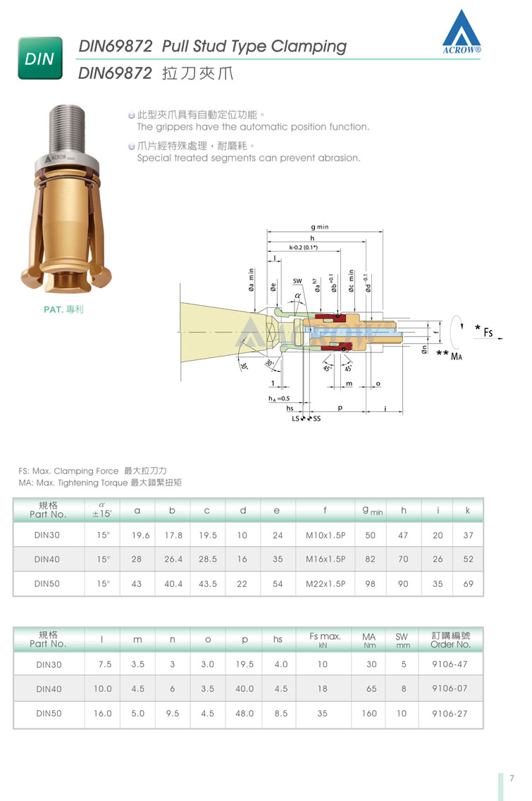 二:ACROW主軸拉爪配件