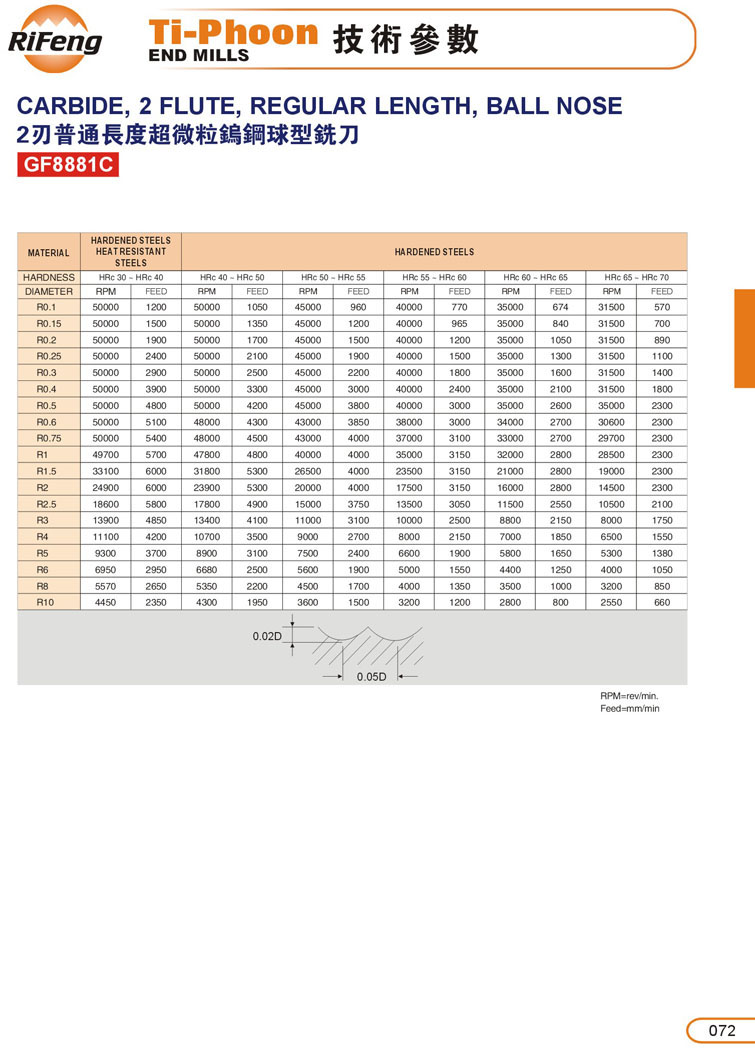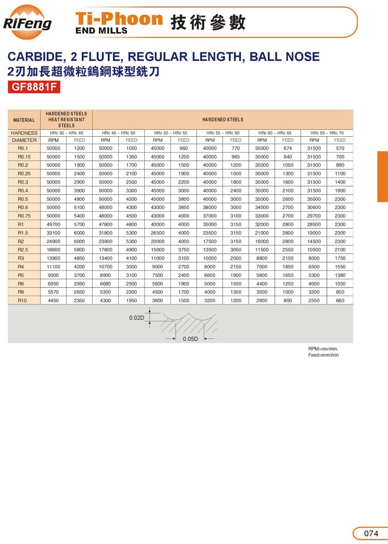 12. 2刃球型超微粒鎢鋼深溝立銑刀068