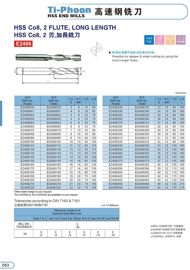 3. 2刃加長白鋼銑刀083