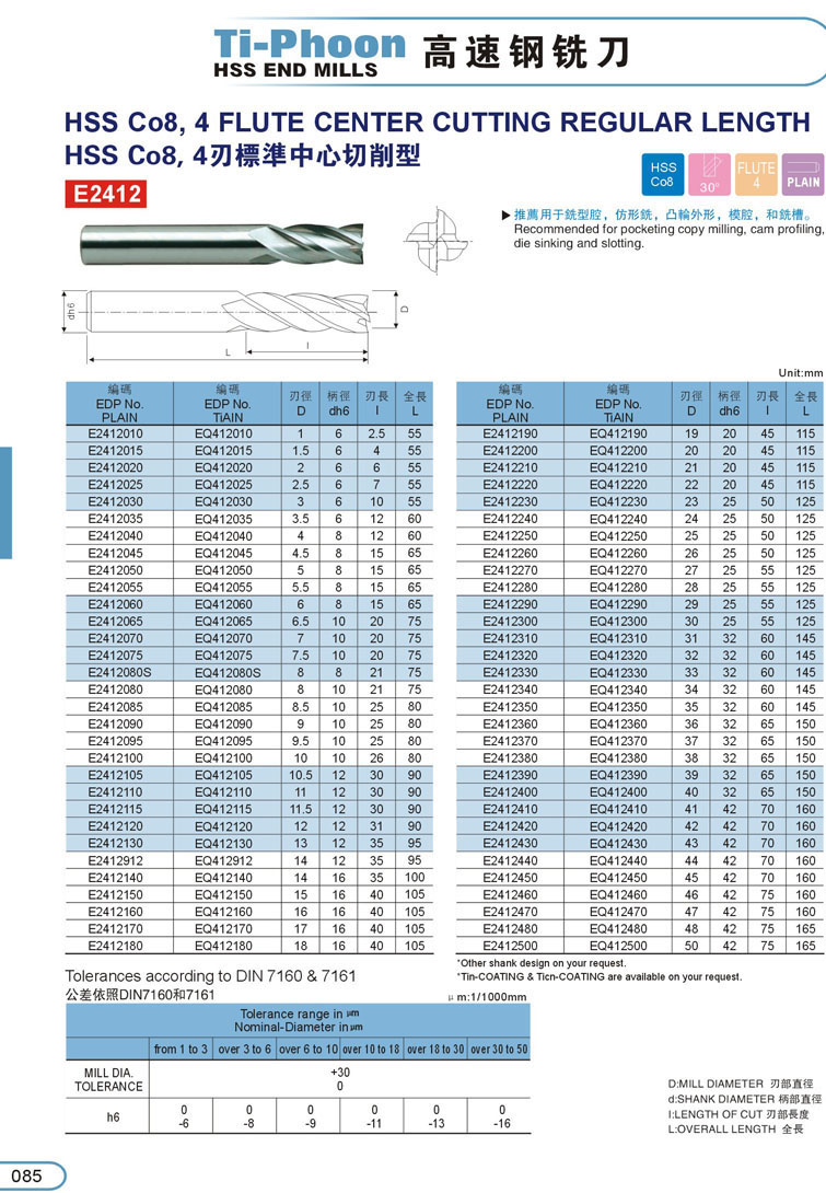 4. 4刃白鋼銑刀085