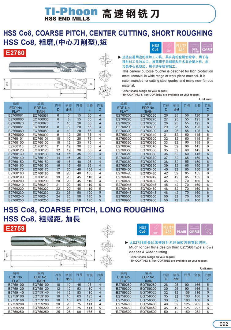 13. 粗齒型粗銑刀092