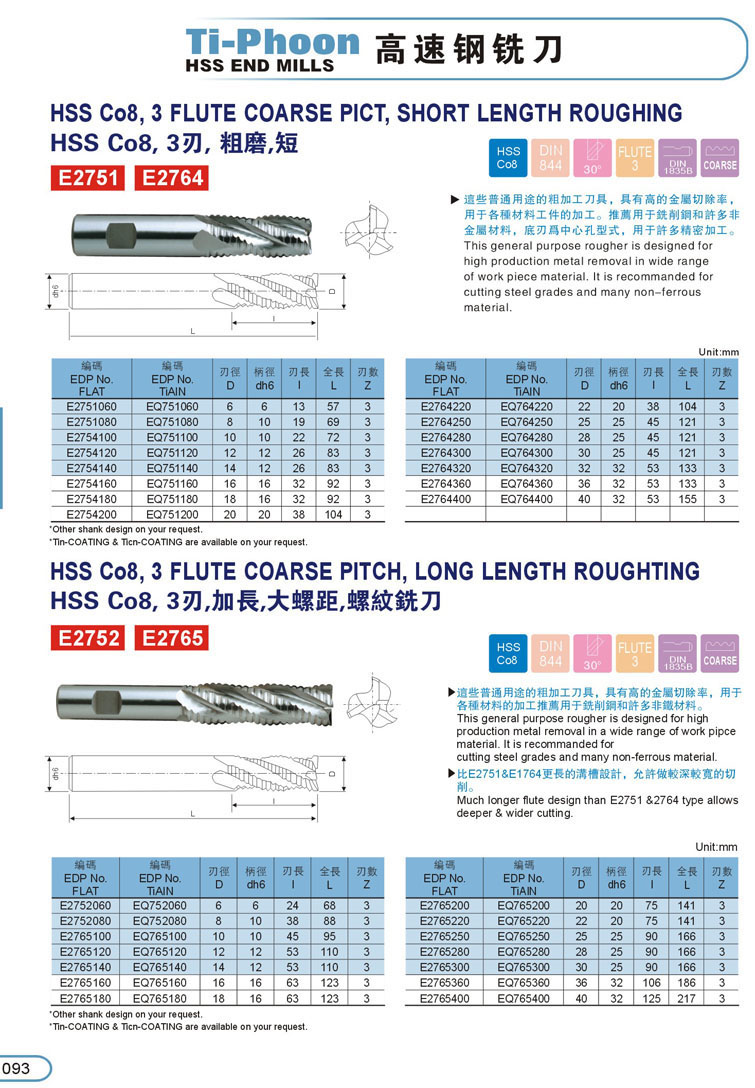 14. 加長粗齒型粗銑刀094
