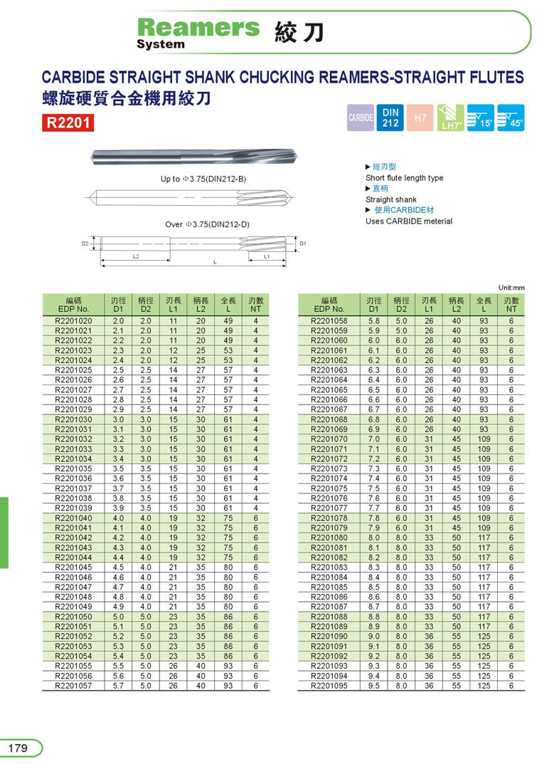 5. CARBIDE鎢鋼螺旋機用鉸刀179