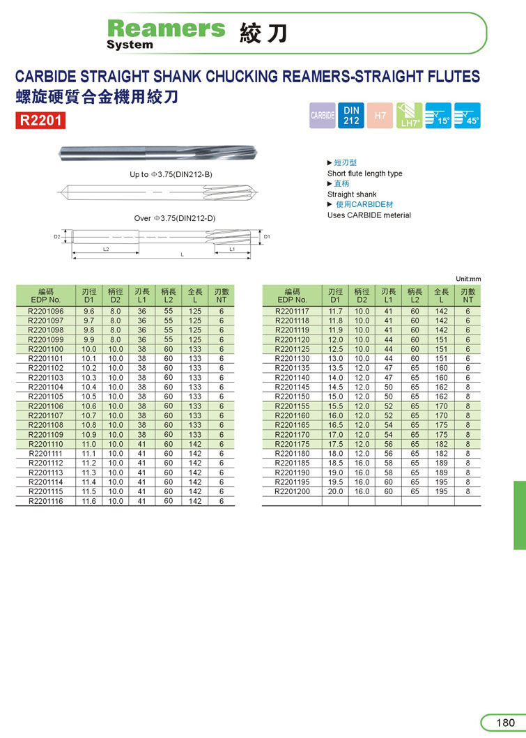 6. CARBIDE鎢鋼螺旋機用鉸刀181