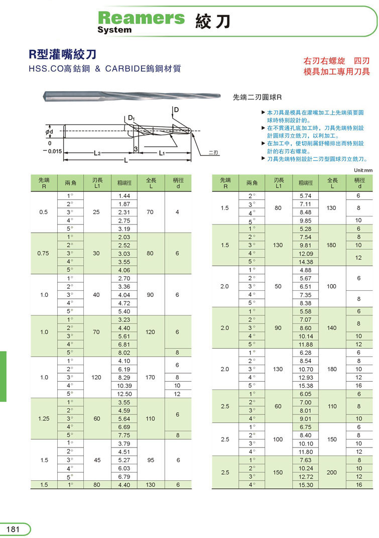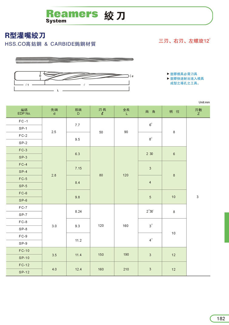 6. CARBIDE鎢鋼螺旋機用鉸刀181