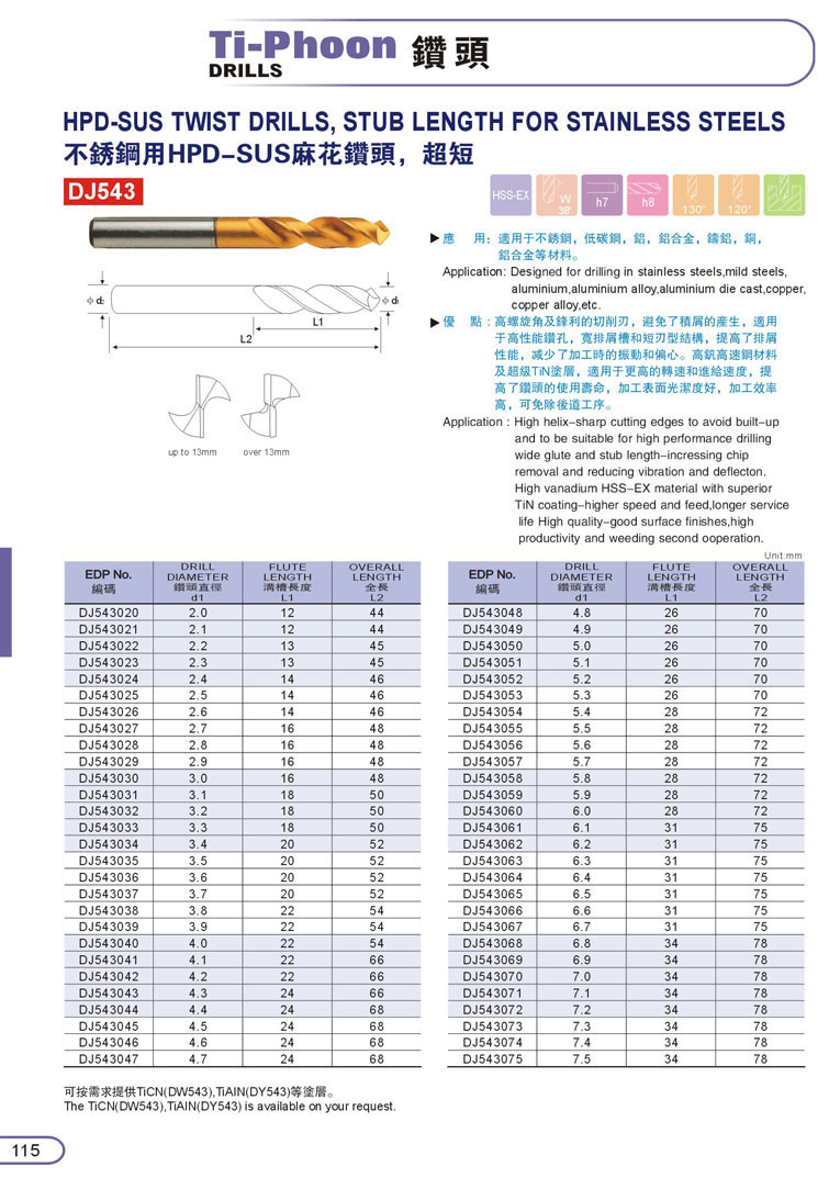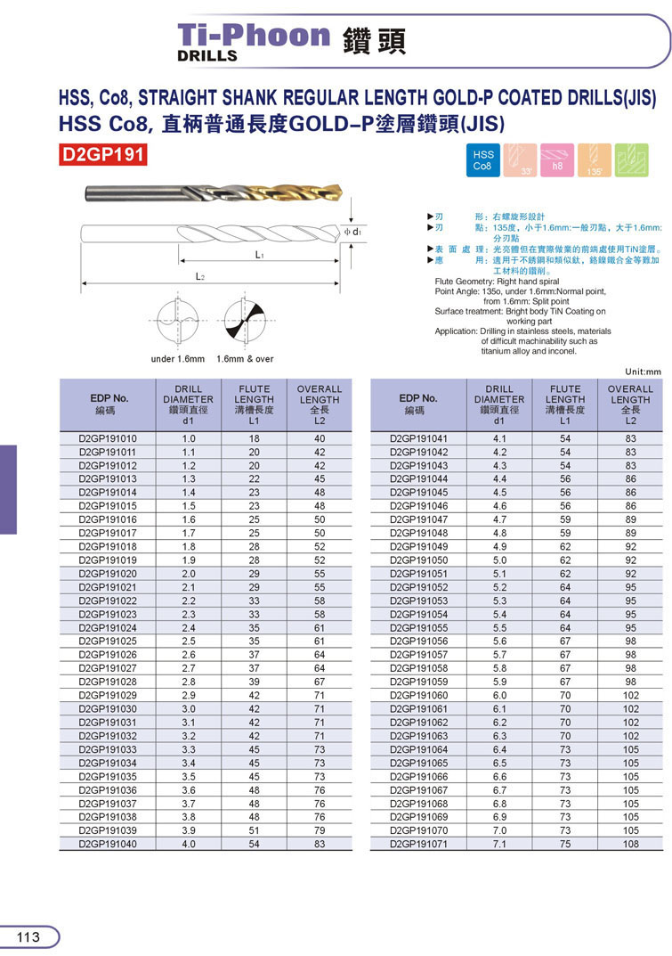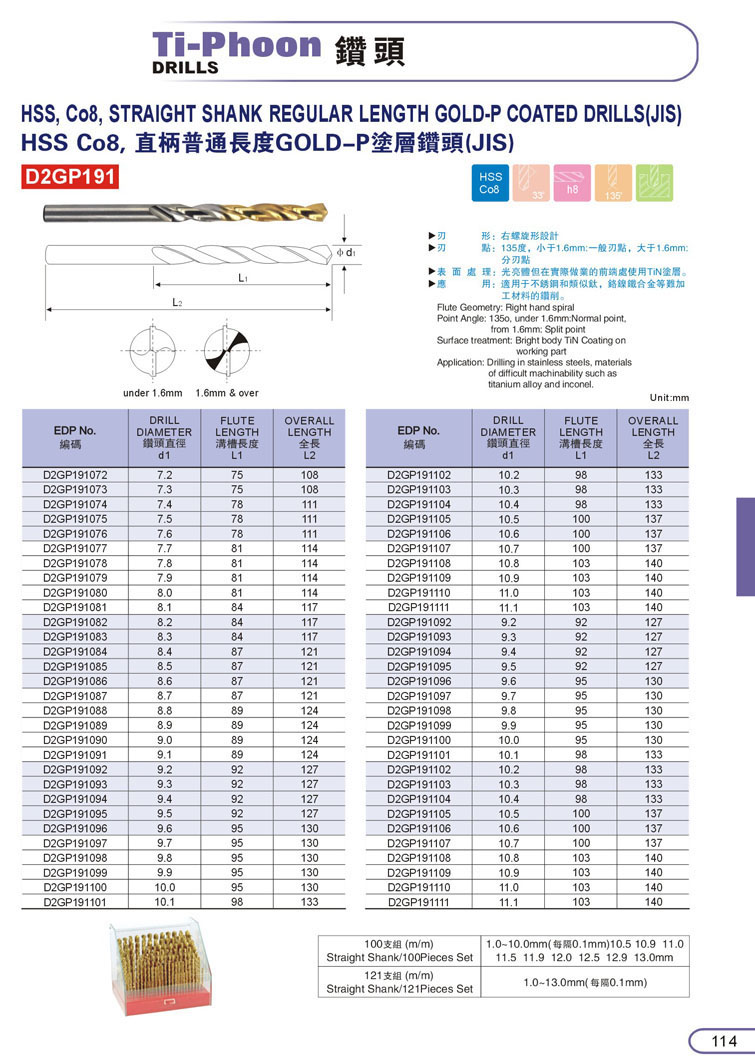 1. HSS直柄鑽頭107