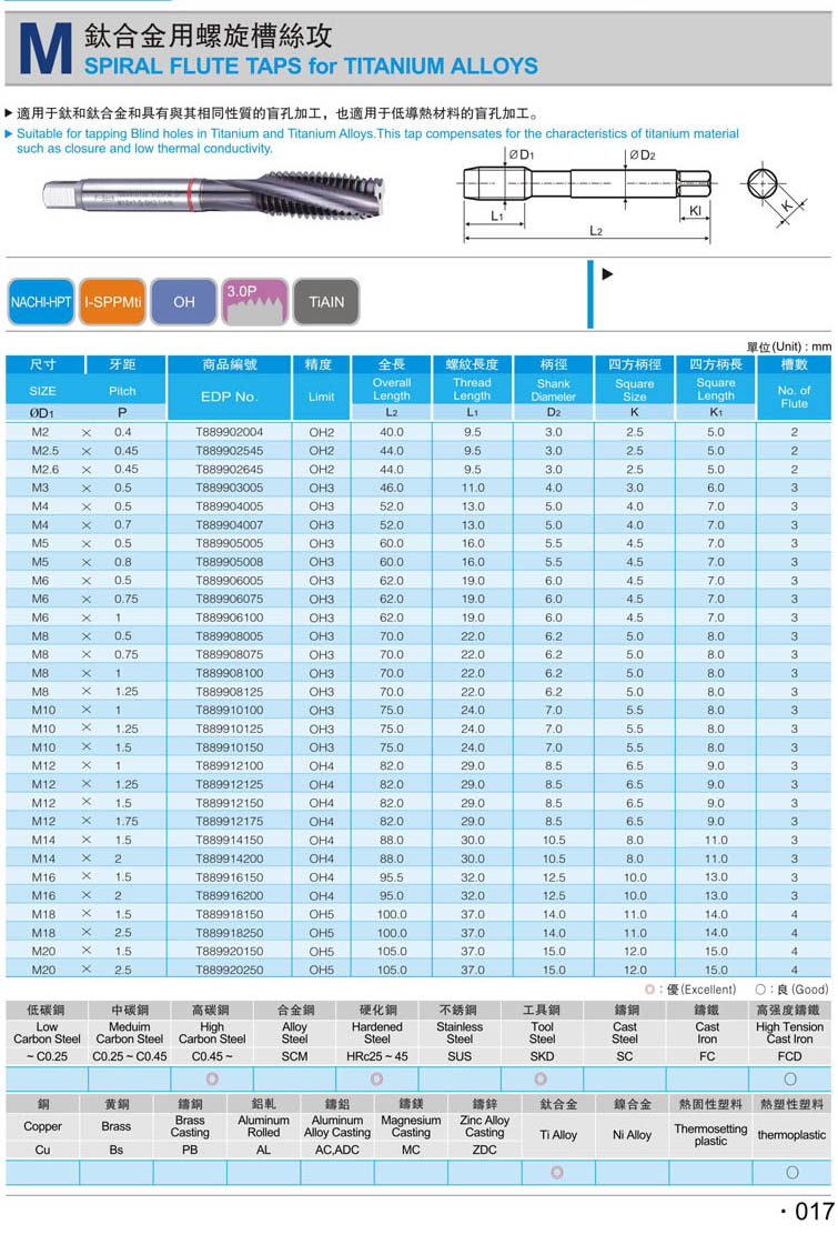 25. 美制螺紋護套絲攻(螺旋型) 042