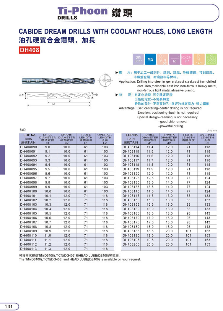 14. CARBIDE高硬度中心出水8D鎢鋼鑽頭132
