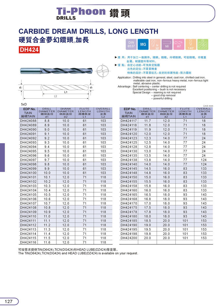 13. CARBIDE高硬度中心出水5D鎢鋼鑽頭128