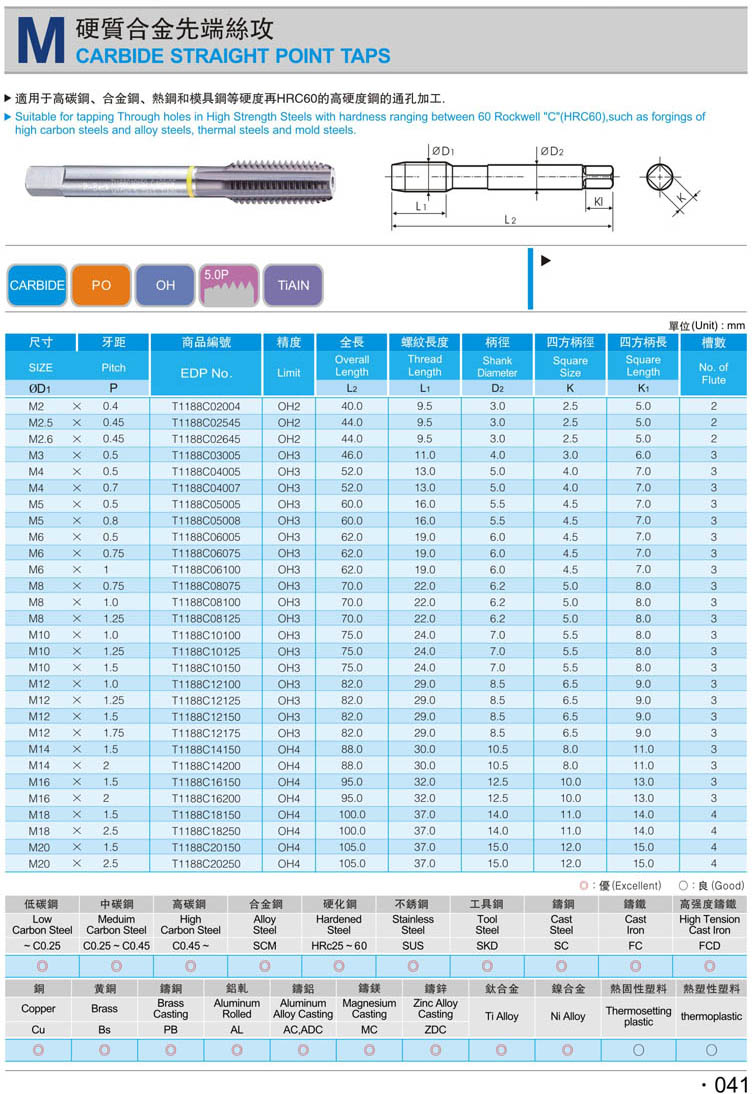 24. 公制螺紋護套絲攻(螺旋型) 042