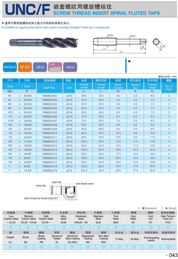 25. 美制螺紋護套絲攻(螺旋型) 042