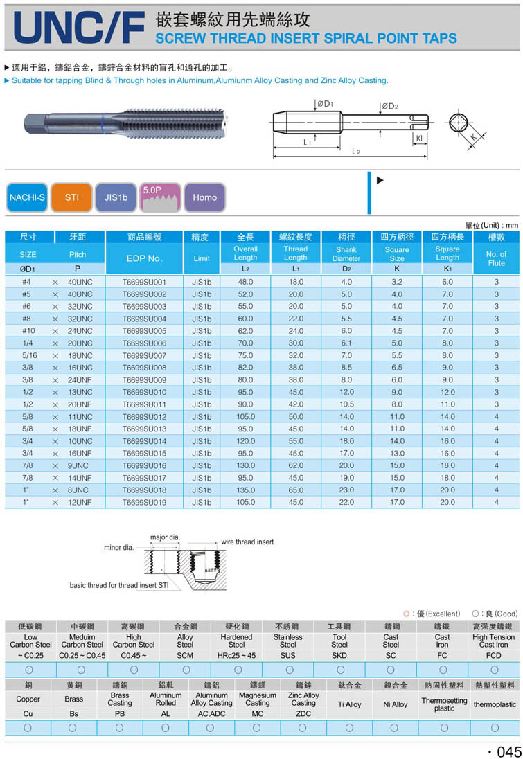 25. 美制螺紋護套絲攻(螺旋型) 042