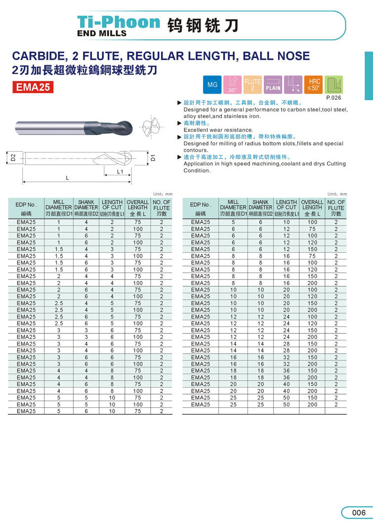6. 2刃加長球型超微粒鎢鋼立銑刀006