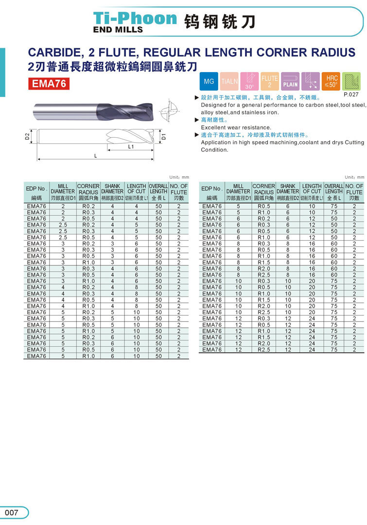 2刃超微粒圓鼻鎢鋼立銑刀007