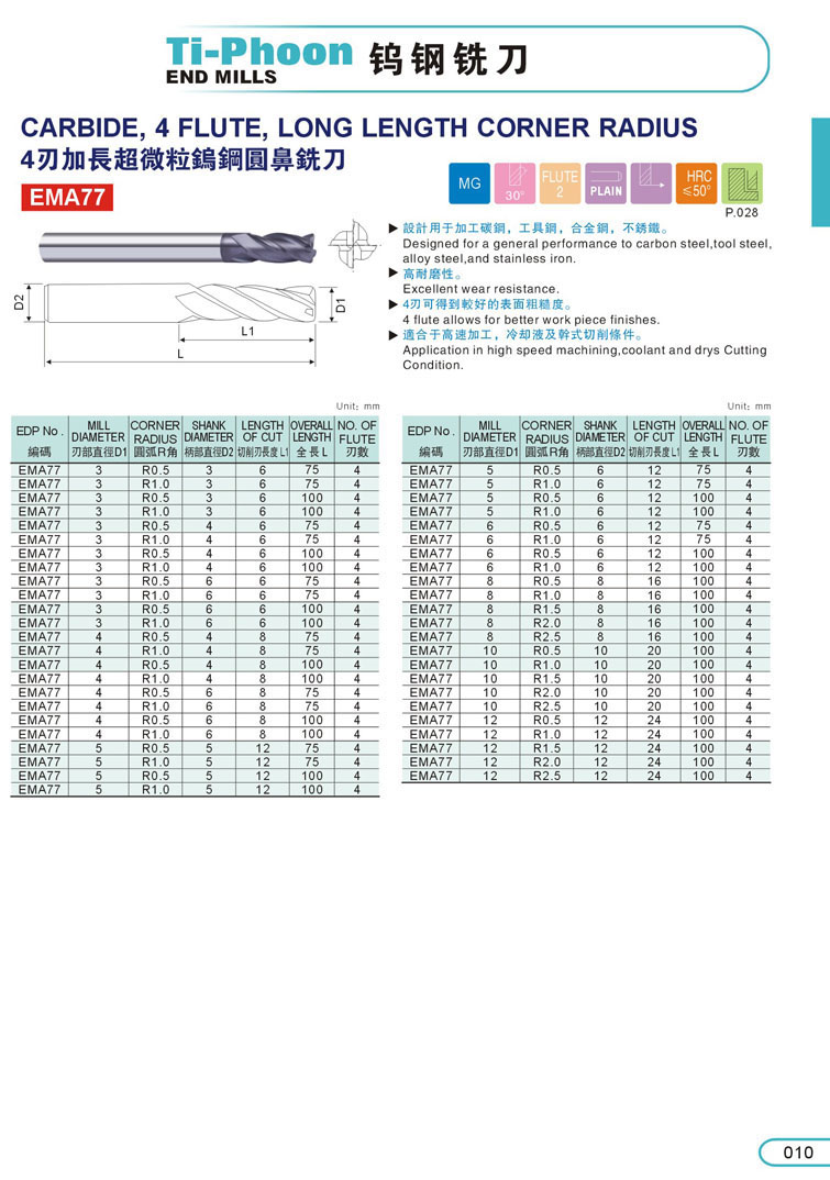 10. 4刃加長超微粒圓鼻鎢鋼立銑刀010