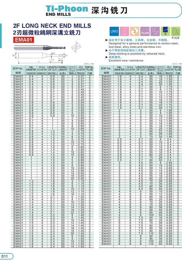 11. 2刃超微粒鎢鋼深溝立銑刀011