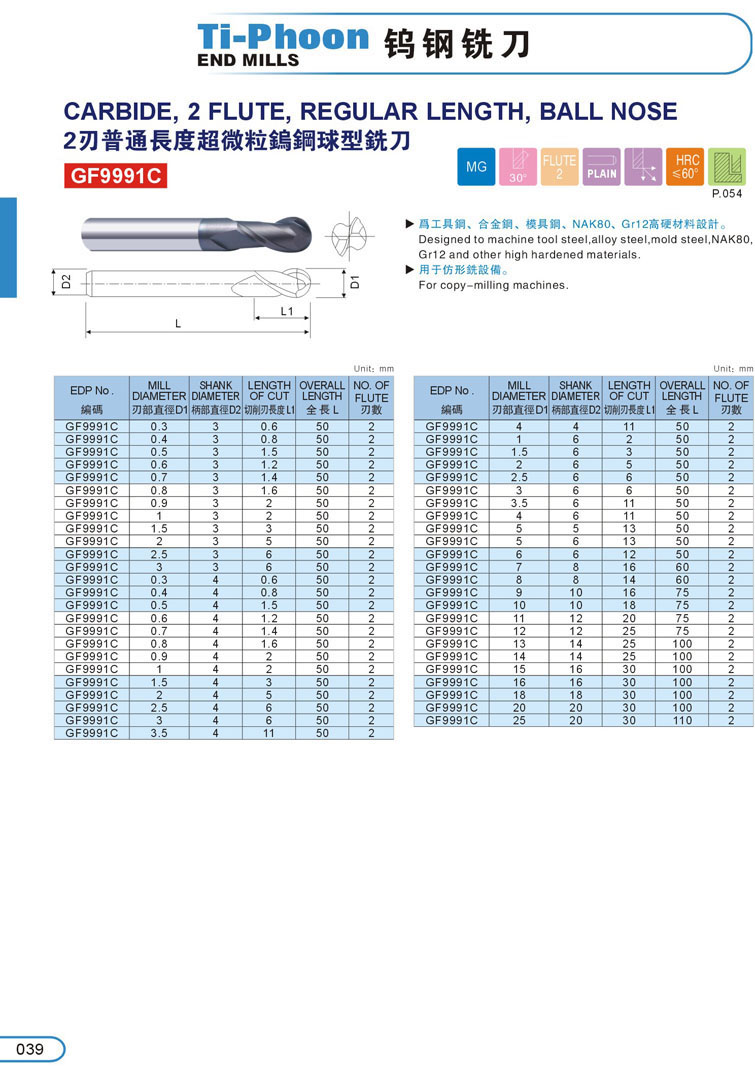 5. 2刃球型超微粒鎢鋼立銑刀039