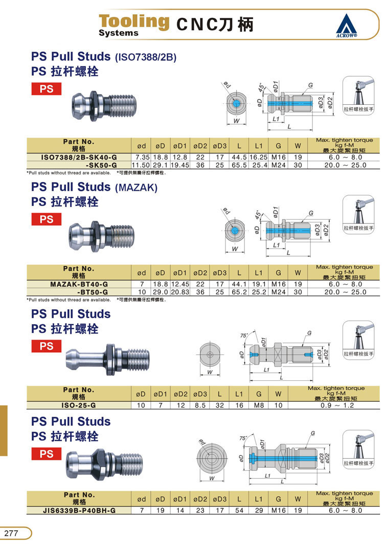 一:ACROW加工中心刀柄