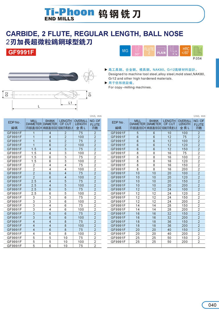 6. 2刃加長球型超微粒鎢鋼立銑刀040