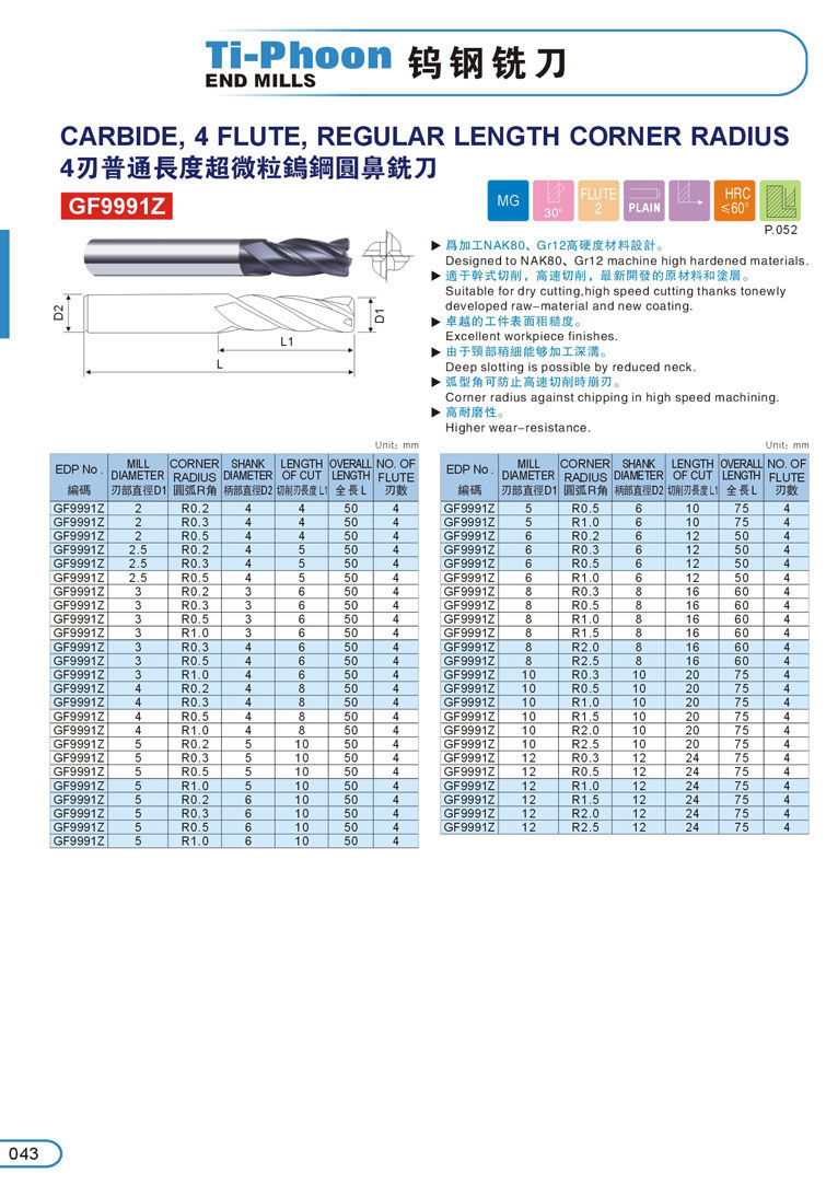 9. 4刃超微粒圓鼻鎢鋼立銑刀043