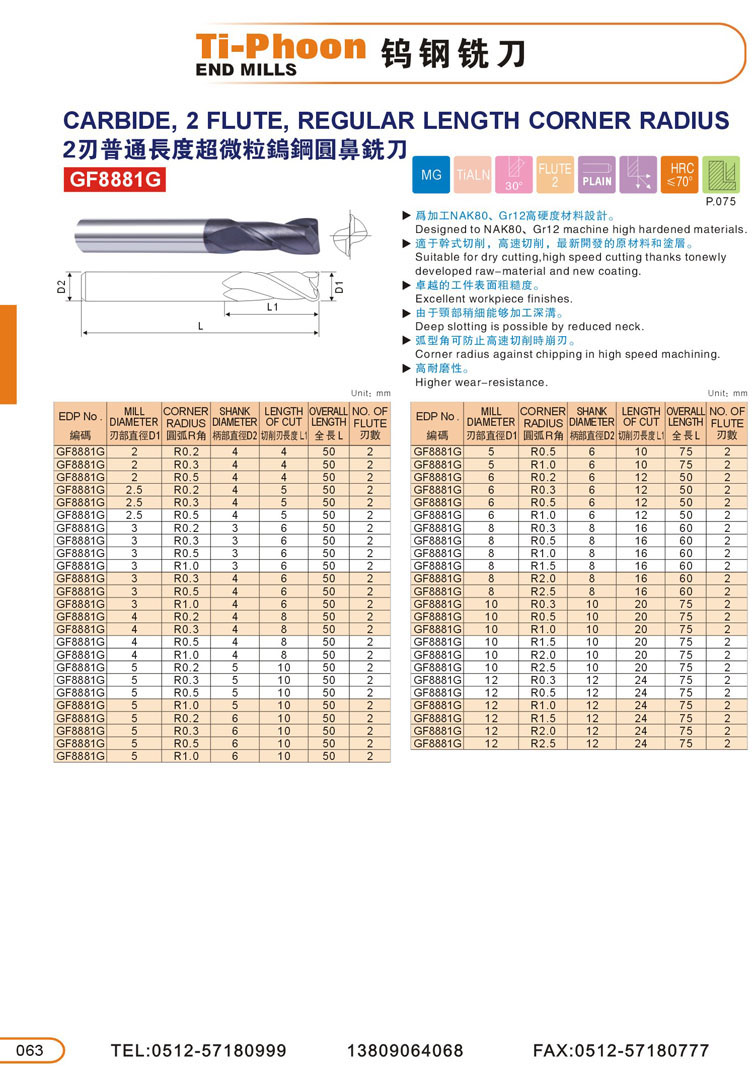 7. 2刃超微粒圓鼻鎢鋼立銑刀063